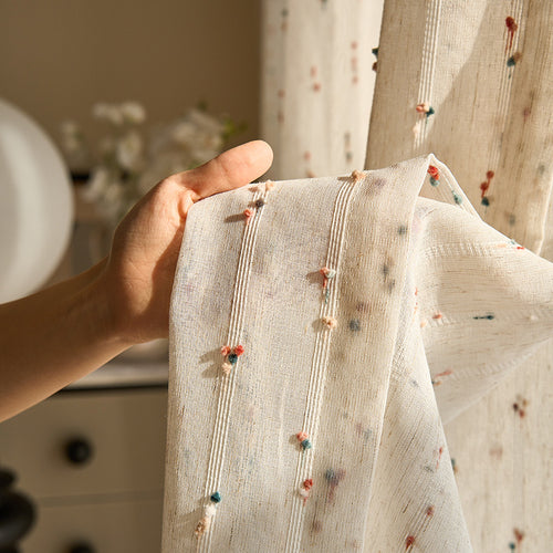 Colorful Woven Stripes Linen Texture Sheer Curtain